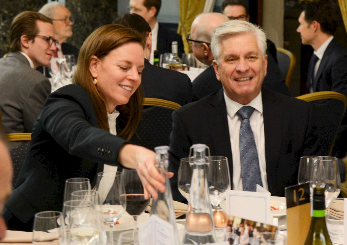 The SPE’s Chair, George Buckley, started the formal speeches by thanking Oxford Economics on behalf of the Society for generously sponsoring the dinner, and updated guests on the latest Society news and growth and thanked his fellow council members, and non-council members for the valuable support they offer. George also thanked all our sponsors including KPMG for its kind sponsorship of the Rybczynski Prize before handing over to SPE President, Sir Dave Ramsden, to introduce Governor Waller.